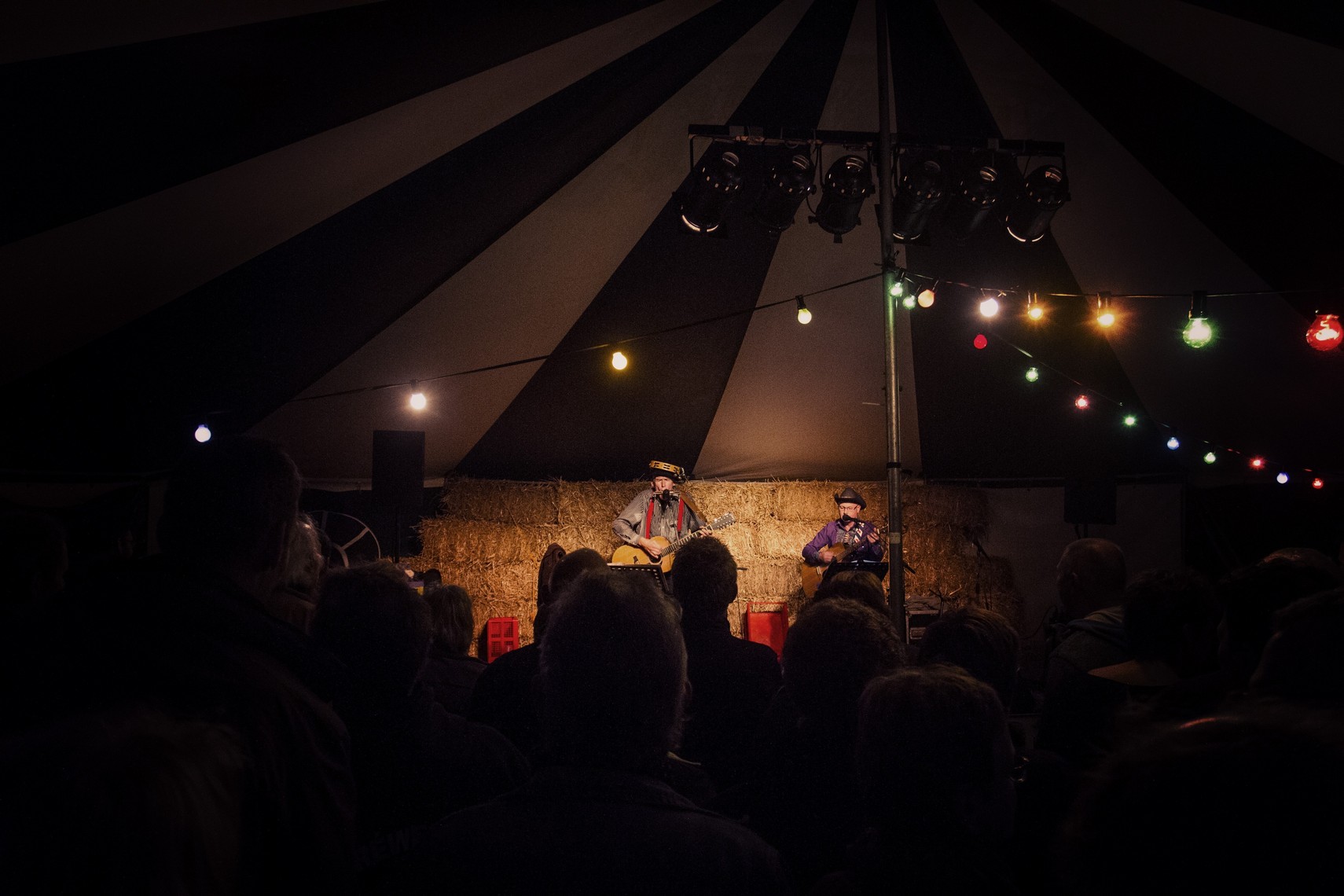 festival. We begonnen onversterkt in een onvervalste turfschuur, maar in de tweede versterkte set in de ronde tent ging het dak er echt vanaf. Aanvankelijk moesten we opboksen tegen het geluid van een andere band, waardoor we elkaar bijna niet konden horen, maar nadat we bij Cecilia de tas met percussie hadden laten rondgaan, was de zaal niet meer te houden. En masse zong men met ons mee; Do kinst net altyd krije watste wolst (vertaling van You Can’t Always Get What You Want). Ook Lâns de Sédyk (friese vertaling van The River) kreeg een enthousiaste respons. Maar met het laatste nummer kwamen we helemaal in sprookjesland terecht, toen we met hulp van een orkestrale begeleidings-band een friese versie van Nights In White Satin zongen. Voor mij zag ik een zee van brandende ledlampjes heen en weer bewegen. Na afloop zei de presentator: dit optreden zullen we ons heel lang blijven herinneren. Nou, wij in ieder geval: Nij Beets, jullie waren geweldig.